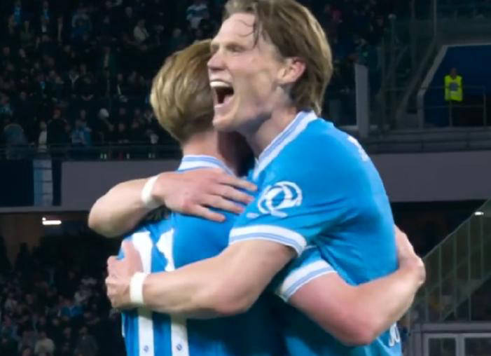 比赛前传出孔蒂或将执掌意大利国家队教鞭的消息,但这丝毫未影响那不勒斯的状态。开场仅3分钟,凭借德布劳内精准斜塞助攻麦克托米奈远射破门,主队瞬间取得领先。两人在场上紧密配合,情景颇为感人——昔日曼城与曼联同城死敌的球员,如今在那不勒斯成为最默契搭档。半场临近结束时,霍伊伦德制造对手乌龙,加之德布劳内的再次破门,使得球队以3-0遥遥领先,令比赛早早失去悬念。下半场桑切斯再下一城,最终比分定格4-0。
